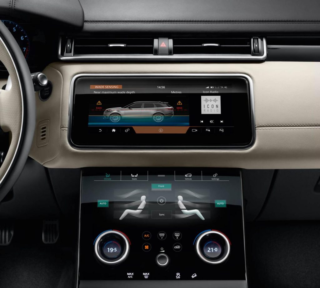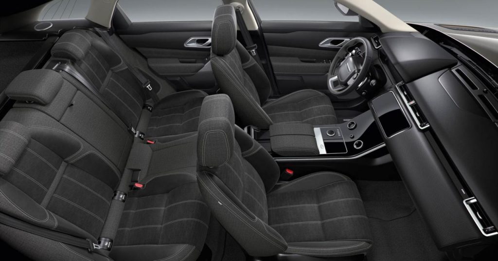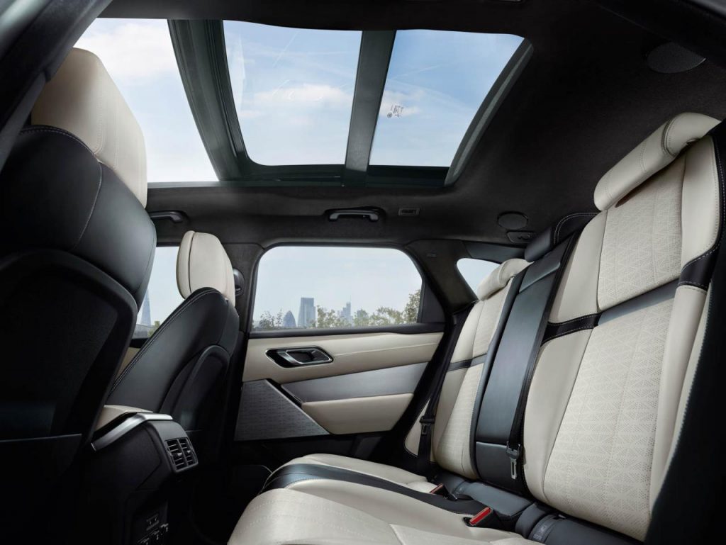 La ligne élancée de SUV ne paraît pas avoir pénalisé les aspects pratiques puisque le Velar revendique un volume de coffre de 632 litres contre 420 litres pour un Evoque et 489 litres pour le Sport. Une fois la banquette arrière rabattue électriquement, le volume atteint 1 731 litres.