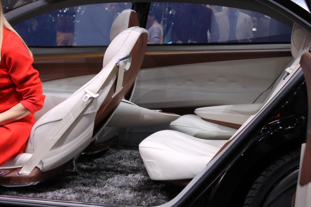Les portes antagonistes donnent accès à un habitacle dépourvu de volant et de pédales puisque la I.D. Vizzion dispose du Graal de la conduite autonome, le niveau 5. Pas question cependant que la future Phaëton en soit équipée lors de son lancement. Volkswagen prévoit d’atteindre le niveau 5 vers 2025. Quant à l’interface par hologramme qui repose sur Microsoft Hololens, il faudra patienter jusqu’à 2030 pour la voir débarquer en série. En attendant, les passagers peuvent interagir avec le véhicule par les commandes gestuelles et vocales. Alors que l’Audi Aicon du salon de Francfort offrait devant les passagers avant un large écran, ceux de la I.D. Vizzion doivent se contenter d’un large placage en bois. L’écran est désormais affiché sur le pare-brise.