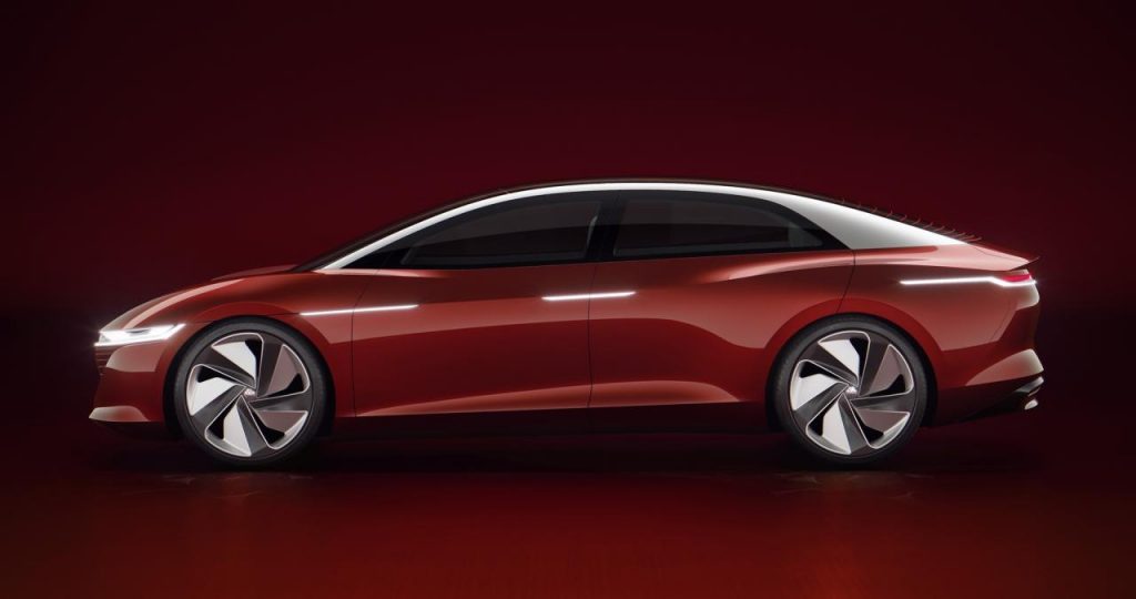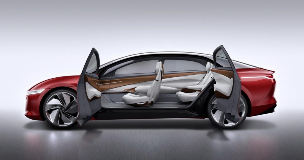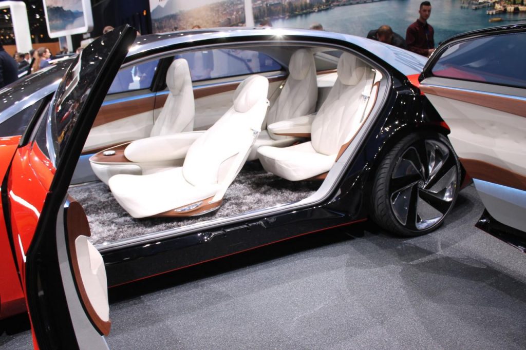 Esthétiquement la plus conventionnelle des quatre concepts, la I.D. Vizzion se rattrape par l’absence de volants et de pédales, son système de conduite autonome et une débauche de technologies.