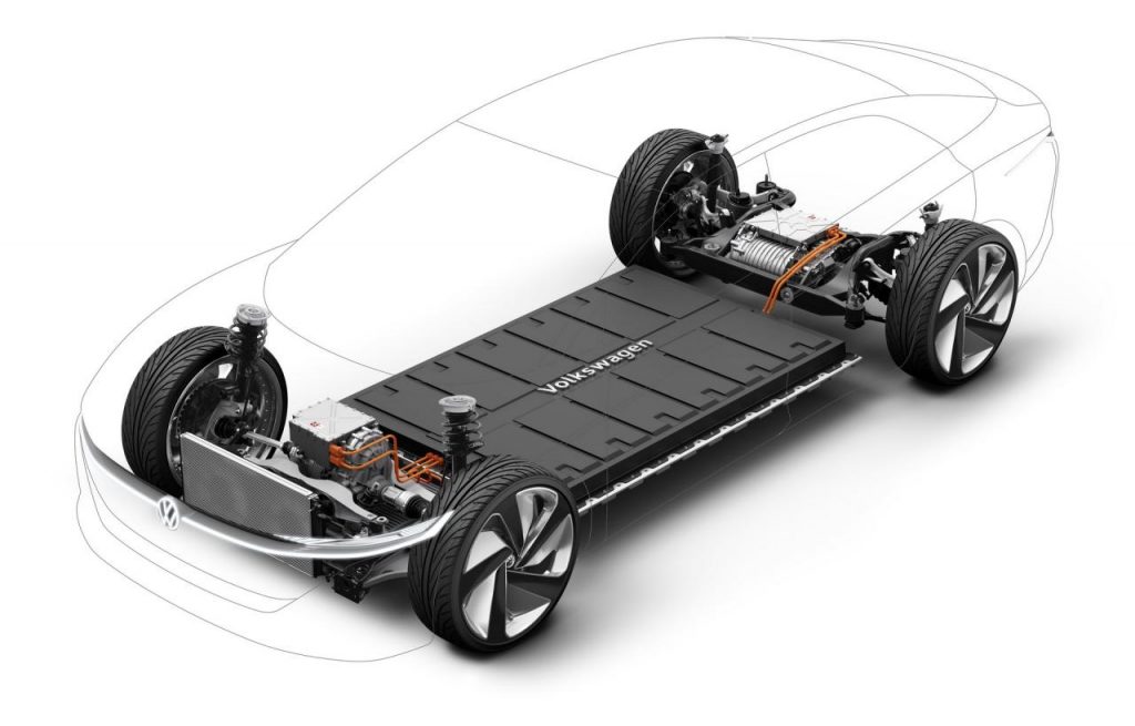 Pour emmener ces quatre passagers, la Volkswagen I.D. Vizzion est propulsée par deux moteurs électriques, un premier de 102 à l’avant et un deuxième de 204 ch à l’arrière. La puissance combinée de 306 ch est transmise aux quatre roues et permet au concept d’atteindre une vitesse maximale de 180 km/h.