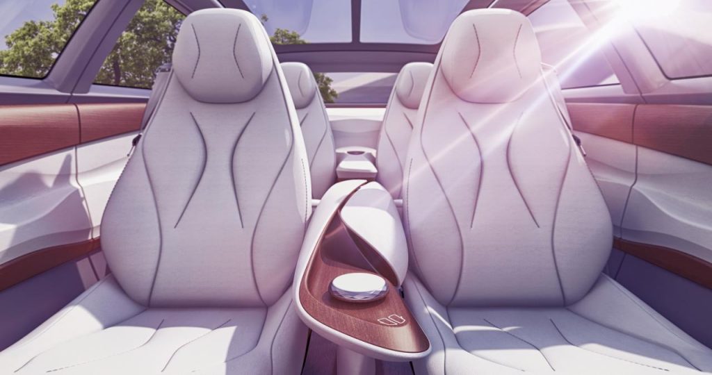 La Volkswagen I.D Vizzion embarque un système de reconnaissance facial pour empêcher le vol du véhicule, des vitres teintées variables et un système de monitorage des passagers pour détecter la fatigue, le confort, voire pourquoi pas l’ennui.