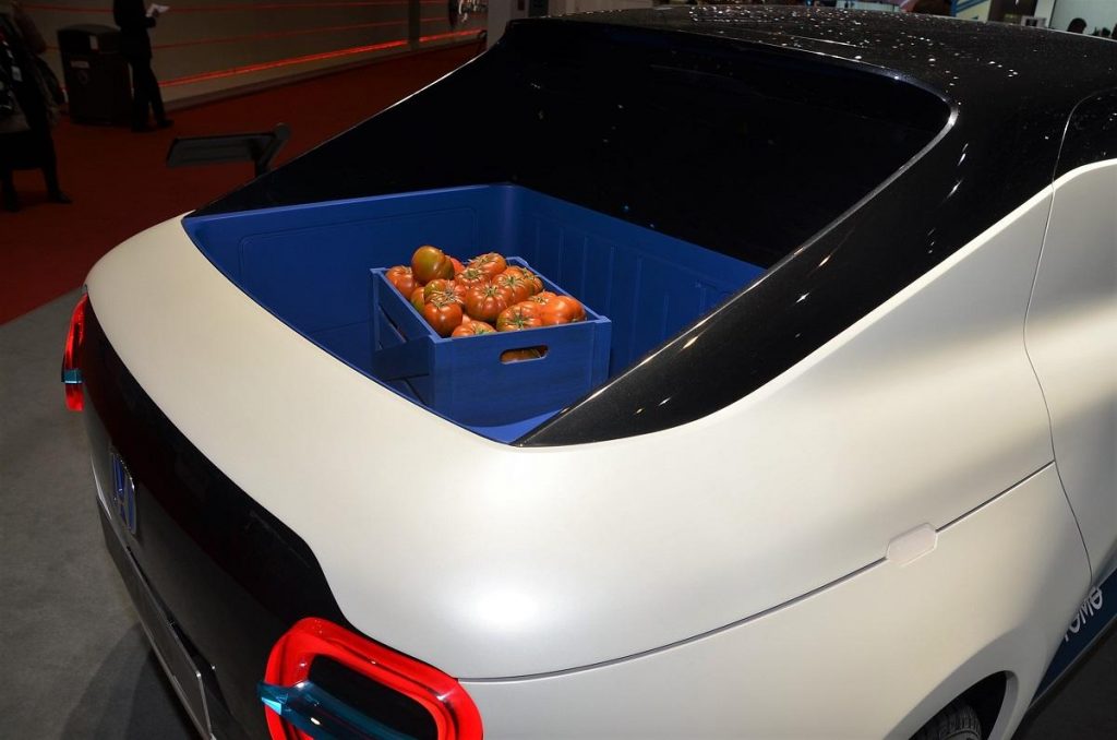 La partie arrière façon pick-up rappelle le concept Spocket, présenté par Honda il y a 20 ans, alors que le traitement des optiques, le choix de la couleur blanche ou le toit noir sont autant d’allusions à la Honda E prototype, présentée sur ce même salon de Genève à quelques mètres du stand d’IED. La future électrique urbaine de Honda, dérivée de la E, qui sera commercialisée en janvier prochaine dispose plateforme dédiée. Alors pourquoi pas une Sports EV, et un pick-up Tomo?