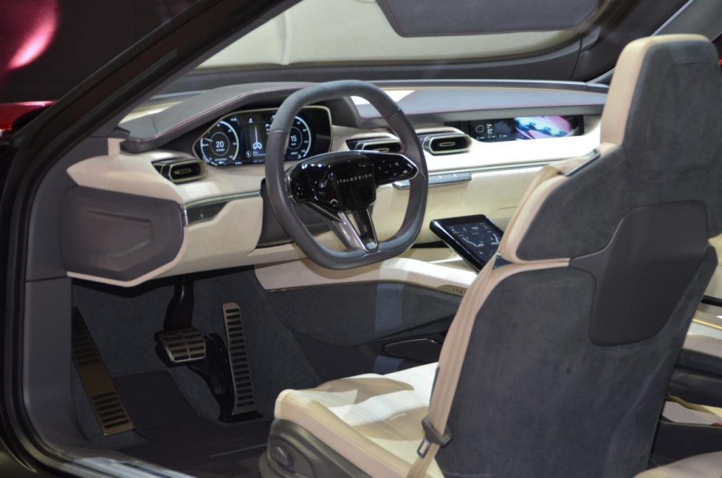 L’intérieur fait la part belle au cuir et à l’alcantara, avec un design à la fois sobre (c’est à dire épuré) et moderne, agrémenté d’une instrumentation digitale qui s’est désormais généralisée sur l’ensemble des véhicules premium. Difficile de se démarquer désormais dans ce registre. On notera toutefois un étonnant volant à méplat avec des commandes digitales incorporées, tandis qu’une partie des commandes et de l’affichage est dissimulée par des garnitures en Alcantara. Par contre, le vrai plus de la DaVinci, ce sont de spectaculaires portes en papillon de type « Gullwing » dont l’ouverture crée toujours la sensation, permettant de découvrir un bel intérieur.