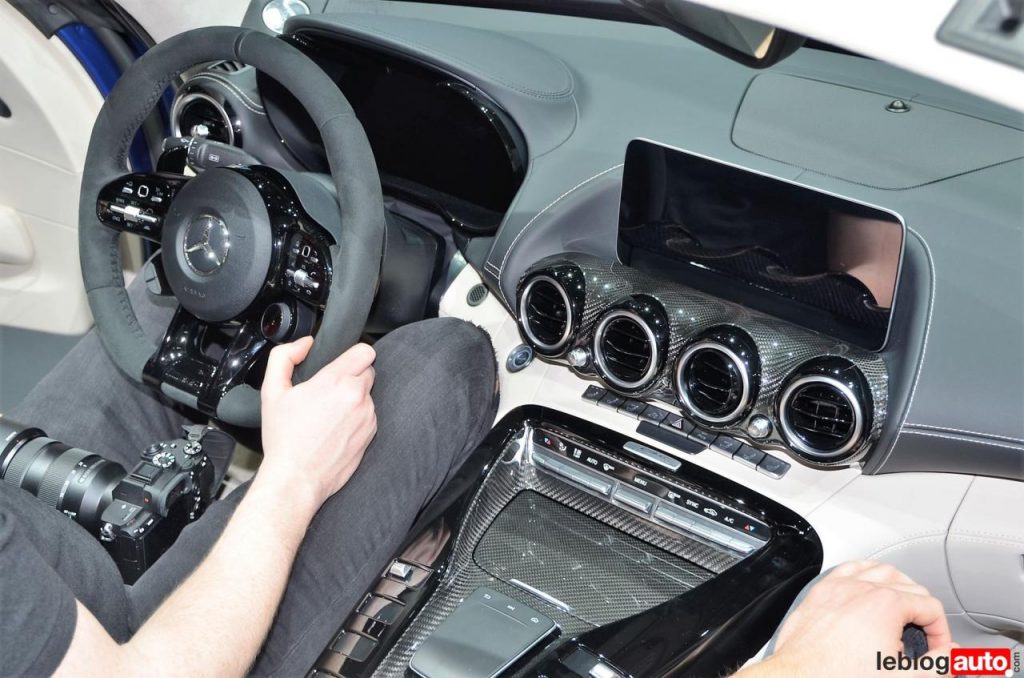 La version coupé, l’AMG GT R date de plus de deux ans. AMG se décide enfin à la décliner en version découvrable. Comme la version coupé, c’est une série limitée. Enfin, il y aura tout de même 750 unités de produites. Contrairement à la compétition, ici, Mercedes n’est pas trop cadenassé par la réglementation. On a donc de l’aérodynamique dynamique. Des volets s’ouvrent et se ferment à l’avant pour gérer le refroidissement (cela devient classique…) mais on a aussi une jupe active.