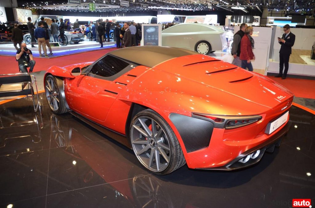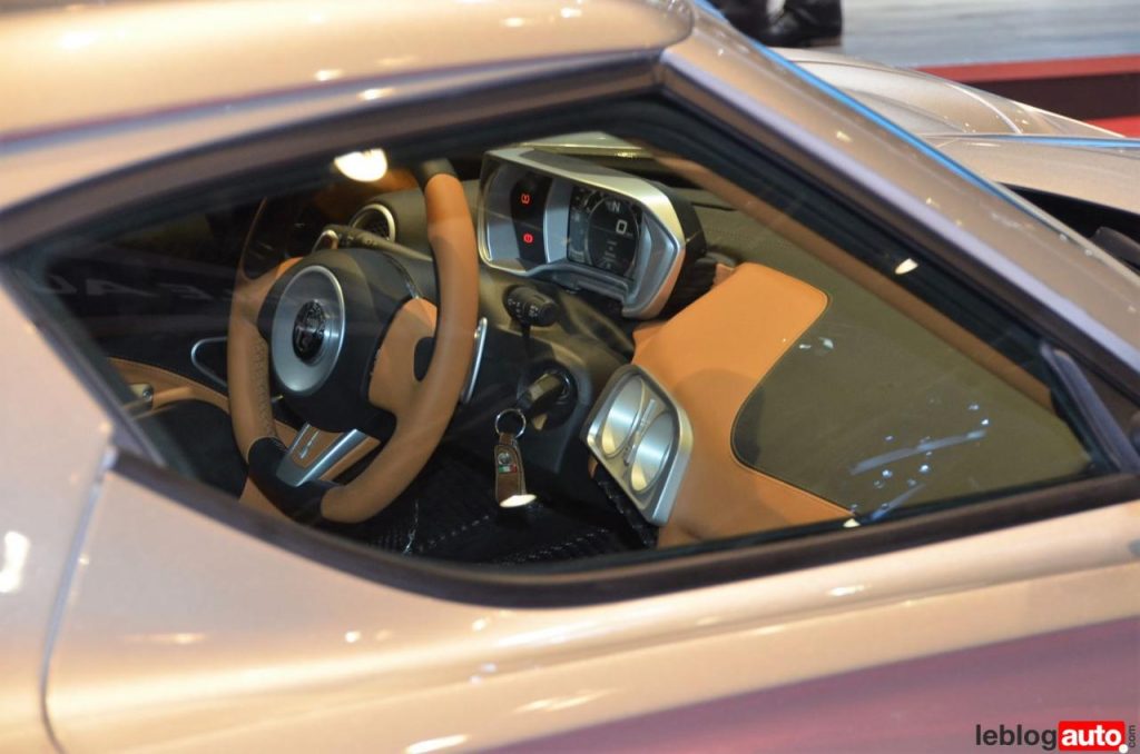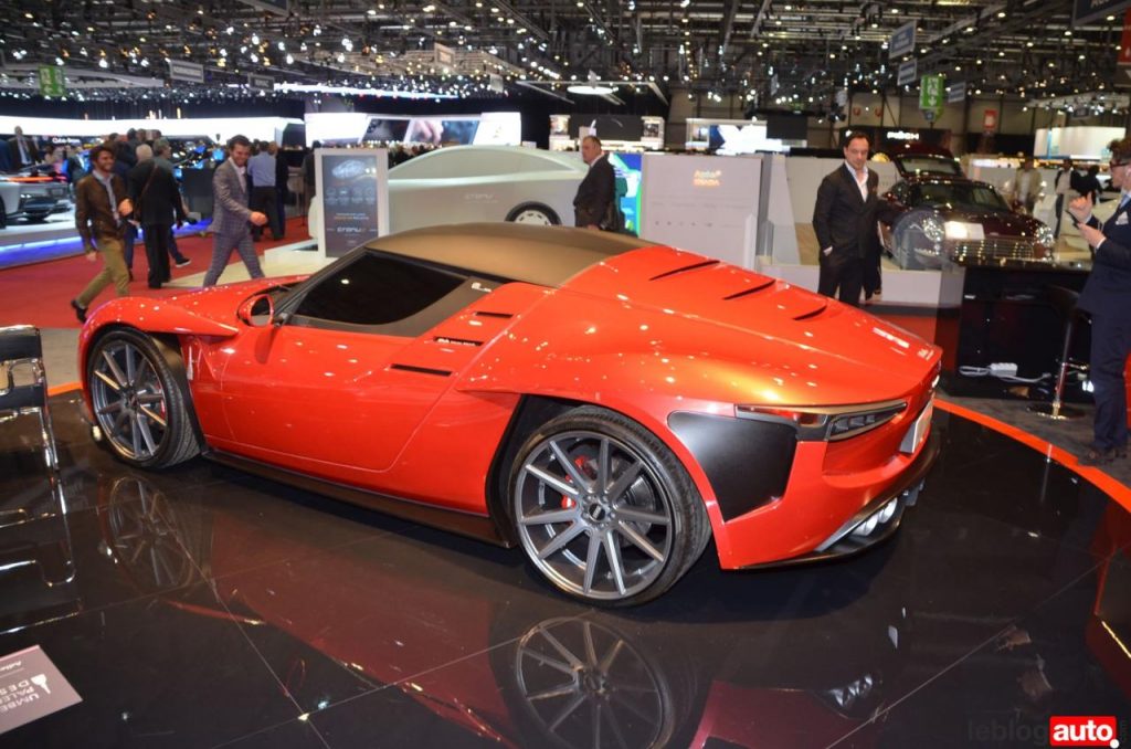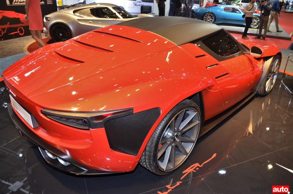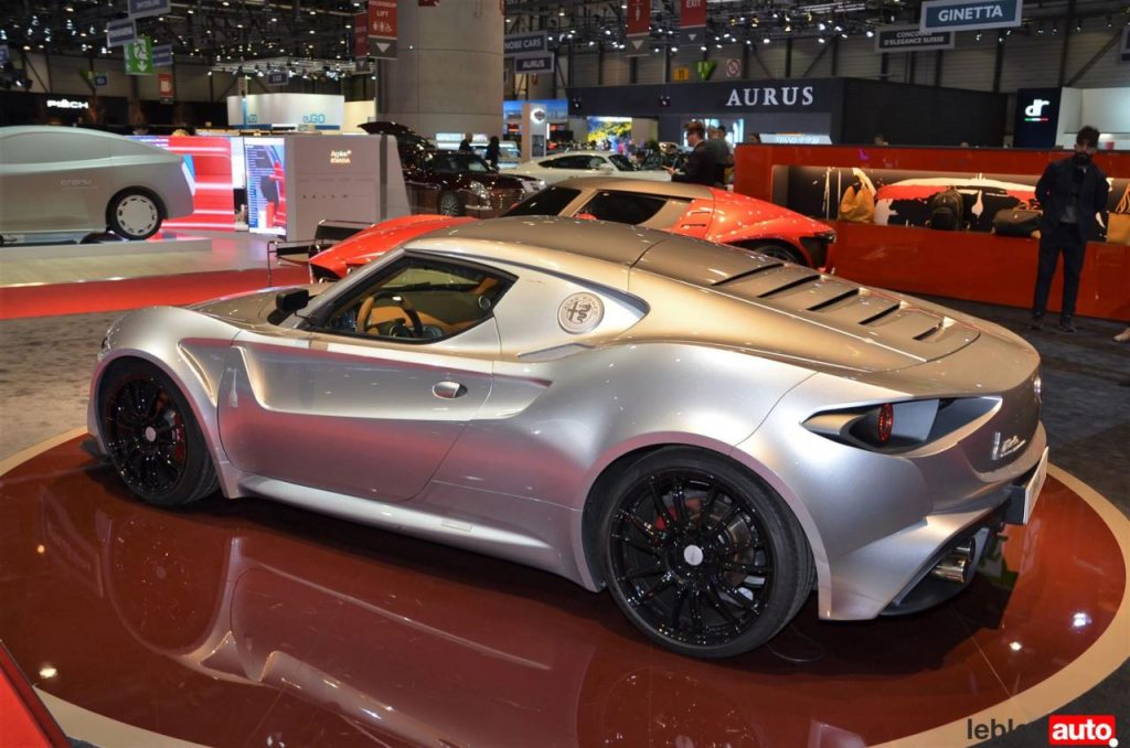 Les feux avants sont encore symboliques et suggérés par leur signature lumineuse. Le profil s’apparente à celui de la 4C mais la voiture est entièrement faite maison. L’arrière est assez fluide, mais un tantinet massif. Le diffuseur carbone et les quatre sorties d’échappement signe cet arrière. Sous la carrosserie arrière, on trouve un V8 90° de 3 litres de 240 ch et 260 Nm « seulement ». En plus, la voiture pèse 1 430 kg à vide. Pas de quoi faire tomber les chronos mais déjà de quoi prendre du plaisir si le châssis est à la hauteur.