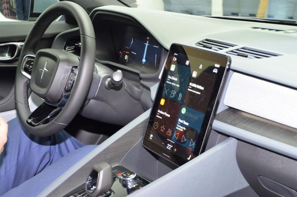 Avantage à la sino-suédoise sur la présentation intérieure, certes moins futuriste et dépouillée, mais avec des matériaux et assemblages plus flatteurs. Le grand écran central de 11 pouces abrite le nouveau multimédia fonctionnant sous Android et semble plutôt performant à l’usage. La disparition des boutons et commandes se prolonge ici et il ne reste plus que quelques commandes physiques sur la console centrale (désembuage, feux de détresse, lecture / pause, volume…). Les aérateurs centraux migrent en haut de la planche pour dégager l’espace autour de l’écran, et dans les portes, les haut-parleurs se cachent derrière le tissu.