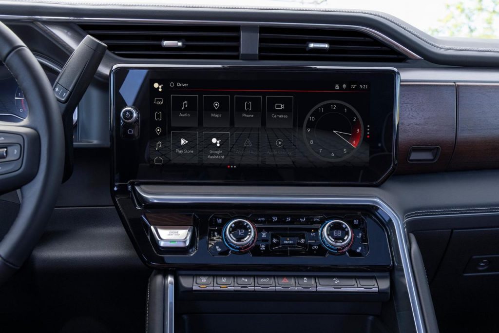 Comme souvent, c'est à l'intérieur que les changements sont plus significatifs, car la finition et l'équipement des super trucks n'a rien à voir avec l'image rutsique que l'on peut encore avoir en tête. L'intérieur est agrémenté pour les versions SLE et SLT, sachant que les versions AT4, Denali et Denali Ultimate sont encore plus luxueuses. On distingue un nouveau groupe d'instruments numériques de 12,3 pouces et un système d'infodivertissement de 13,4 pouces avec intégration Google ainsi qu'Android Auto sans fil et Apple CarPlay sans fil. Le système d'infodivertissement a également une vue en écran partagé, de sorte que les conducteurs peuvent avoir un écran de navigation sur le côté gauche tout en ayant des commandes audio sur la droite.