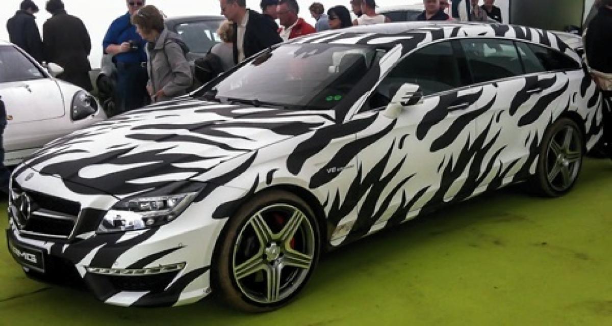 Conformément aux dernières tendances chez les constructeurs, la voiture délaisse l’adhésif noir traditionnel du prototype surpris en pleine mise au point au profit d’un camouflage noir et blanc plus très loin du zèbrage utilisé pour les safaris. La CLS AMG toutefois se contentera des safaris sur asphalte avec son assiette surbaissée, ses boucliers, ses grandes roues et ses gros freins identiques à ceux de la CLS 63 AMG. La motorisation est également identique à celle de la berline, c’est marqué dessus sous la forme du redoutable sigle « V8 biturbo » signalant la présence sous le capot du V8 5,5l doublement turbocompressé de 525 chevaux et 700 Nm de couple.