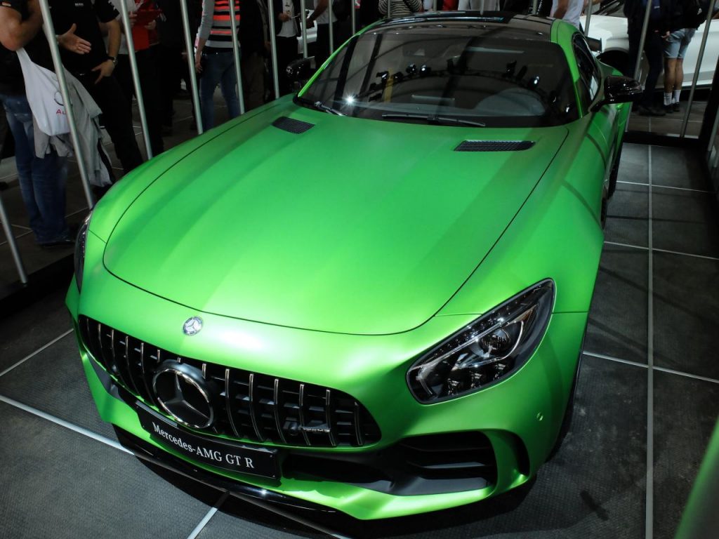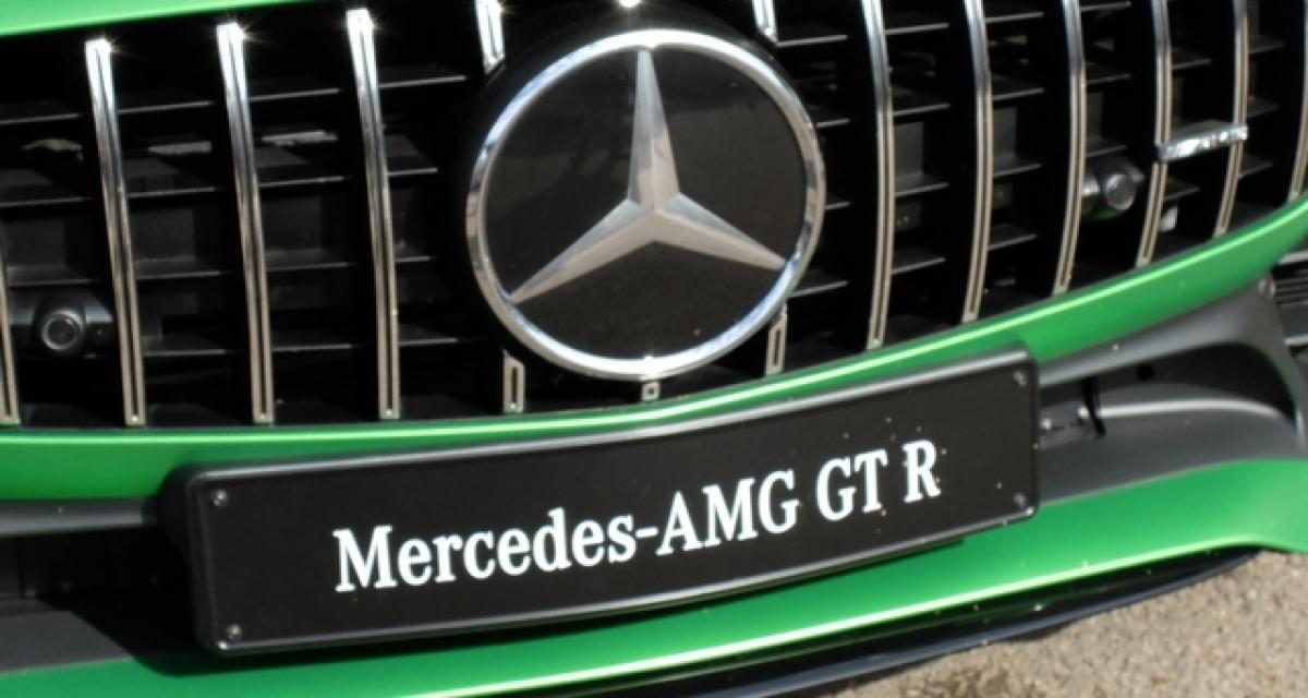 Une cavalerie de 585 ch à 6 250 tr/min, des réglages spécifiques châssis, une gueule béante à la Panamericana et rappel à la 300 SL, des appendices de carrosserie, une livrée AMG green hell magno, 700 Nm de couple de 1 900 tr/min à 5 500 tr/min, des réglages très pointus dans le domaine aérodynamique, un centre de gravité rabaissé, une boîte AMG 7 optimisée, un rapport poids / puissance de 2,79 kg/ch (poids à vide et conducteur de 75 kg), 318 km/h en vitesse de pointe, 3,8 s pour passer de 0 à 100 km/h, 11,4 l/100 km et 259 g/km de CO2, une répartition des masses à 47,3/52, 7 entre les essieux avant et arrière, un ESP possible à calibrer et régler et trois fonctions, etc, etc : voici quelques menues et diverses piqures de rappel sur la Mercedes-AMG GT R, nouvelle déclinaison tête de gondole de la sportive étoilée dont les ventes débuteront en novembre prochain pour une commercialisation à partir de mars 2017 sur les marchés européens.