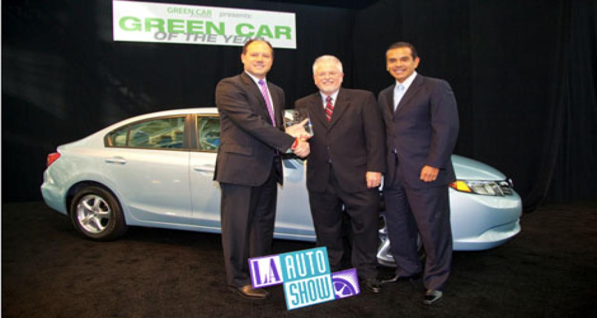 Cette année, une offre originale s’est mêlée à la lutte entre les autres technologies, et elle remporte la palme… Elle, c’est la Honda Civic alimentée au gaz naturel, seule en son genre en production par un constructeur aux Etats-Unis, qui remporte le titre. Cette Civic naguère réservée à quatre Etats (Californie, New York, Oklahoma et Utah) est à présent commercialisée sur une plus large partie du territoire des États-Unis. Malgré l’absence de technologie électrique ou hybride, elle peut bénéficier des autorisations de circulation sur les files réservées en Californie, ce qui n’était jusqu’à présent même pas possible pour la Volt…