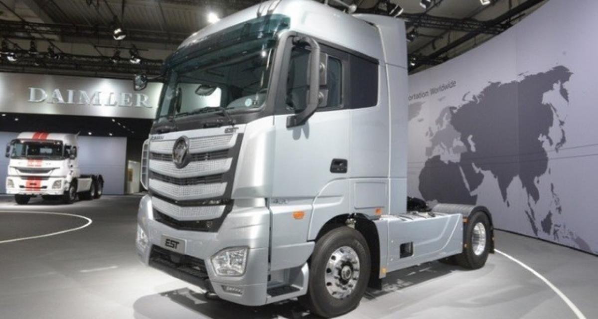 Daimler a droit à un large espace au salon de l’utilitaire d’Hanovre. En tant que partenaire chinois de l’Allemand, Foton en profite pour s’inviter sur le stands. Dans sa valise, non pas du low-cost, mais un Super Truck.