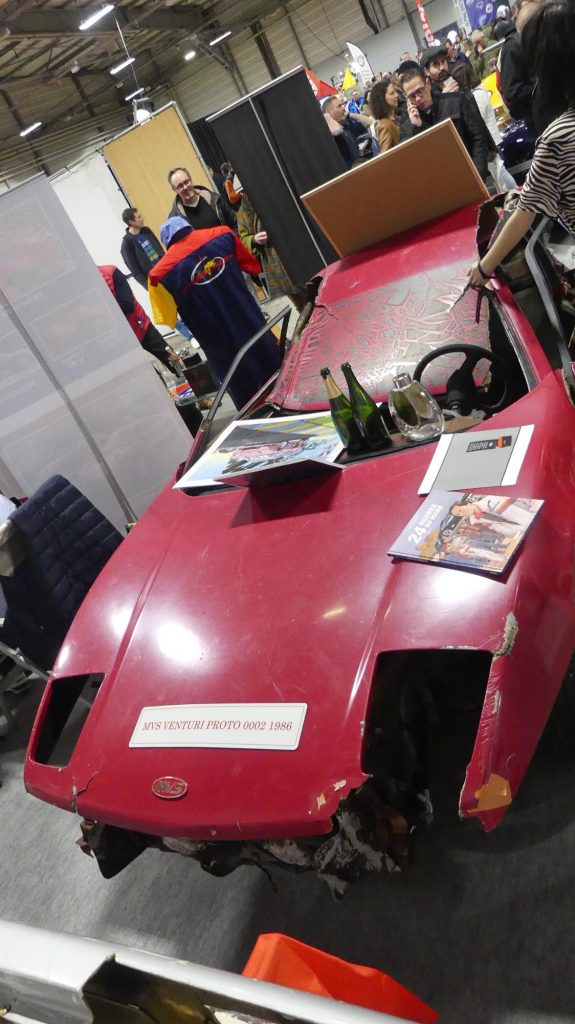 Cette édition du salon Historic Auto était un beau panel représentatif de l’automobile française, européenne et même un peu mondiale. Petite pépite dans un coin du salon, le premier prototype MVS (alias Venturi) était exposé. Il a été retrouvé en juin 2024 un peu par hasard dans un jardin de Loire-Atlantique.