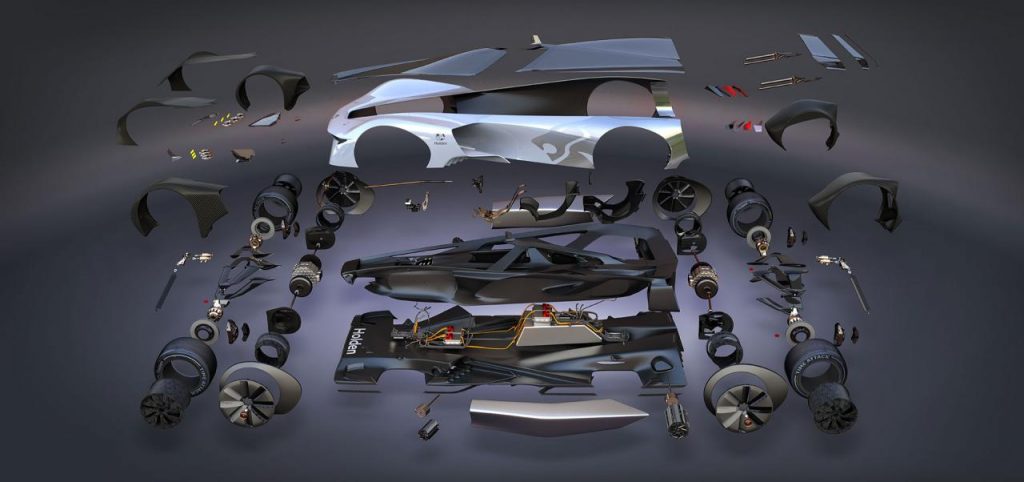 Toutefois, Holden prend le contrepied de cette compétition d’endurance, en donnant ici naissance à un bolide conçu pour battre le chronomètre sur un seul tour. soit donc une épreuve de « Time Attack » comme le nom du concept l’indique. Un concept électrique avec 4 moteurs de 250 kW et donc un total de 1000 kW / 1360 ch, et 3240 Nm. Des moteurs qui sont associés à des transmission (de type planétaire) à 3 rapports.