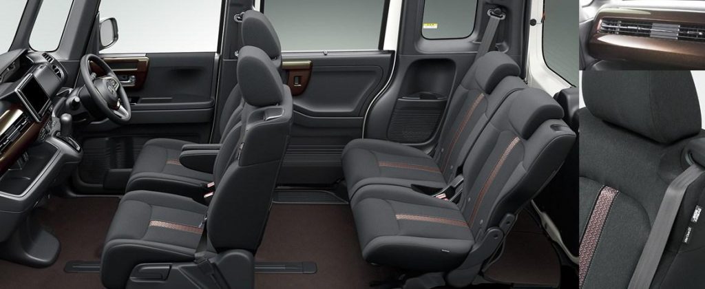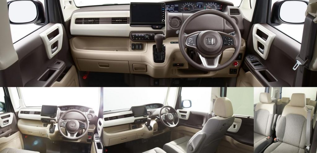Ce moteur est toujours le 3 cylindres 658 cm3 de 58 ch en version atmosphérique et 64 ch en version turbocompressée. Malgré des puissances inchangées et une transmission CVT dans les deux variantes, le Honda N-Box devrait être plus performant et économique grâce à une réduction de poids de 80 kg, soit 870 kg à vide pour l’entrée de gamme. Comme souvent chez les kei-cars, le N-Box est disponible avec une transmission intégrale.