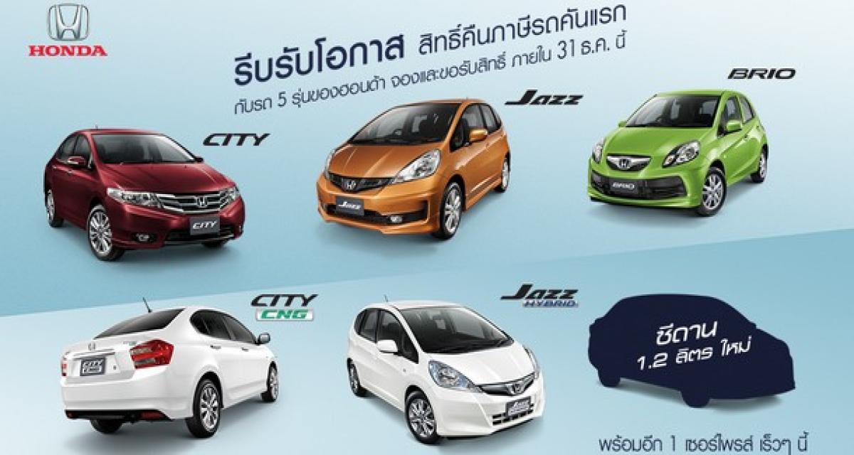 C’est le site internet thaïlandais de la marque qui laisse deviner la berline à venir. Alors que sa concurrente de chez Toyota, l’Etios, dispose de deux carrosseries depuis ses débuts, la Brio se contentait d’une seule déclinaison à 5 portes.  La berline arrive avec un décalage certain, mais le constructeur avait probablement d’autres urgences. Lancée en mars 2011, la petite Honda a connu des débuts difficiles. Non pas commercialement, mais les conséquences conjugués de la catastrophe du Tohoku et des inondations en Thaïlande ont sérieusement perturbé son démarrage. Cette Brio à coffre devrait faire ses premiers tours de roues thaïlandais en début d’année prochaine, avec le moteur 1.2 connue en Europe sous le capot de la Jazz, avant de s’aventurer en Inde au 2ème semestre. Et inaugurer le très attendu moteur Diesel fin 2013, si l’on en croit les prolixes sites indiens.