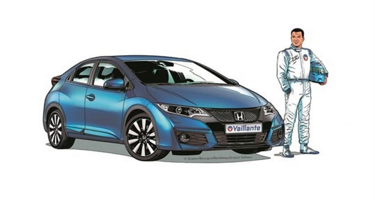 Honda vient de signer un partenariat avec la fondation Jean Graton, à qui l’on doit les aventures de Michel Vaillant. Avant la présentation d’une « Art Car » dans le cadre des 24 heures du Mans, c’est une série limitée Civic Vaillante qui arrive en concession dès aujourd’hui. Les plus anciens ou érudits n’ont pas oublié le coupé Civic Vaillante, diffusé à 50 exemplaires en 1998, dans le cadre du cinquantenaire de Honda. Un modèle aujourd’hui recherché, tant pas les amateurs de raretés, que par les aficionados de Michel Vaillant.