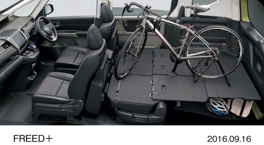 La gamme du Honda Freed se décline également en un duo Freed / Freed+. Mais contrairement à ce que l’on pourrait penser, la Freed+ en offre moins. De places. Il s’agit en effet d’une version 5 places, alors que le Freed propose des configurations 6 et 7 places. Mais il gagne en revanche un plancher extra-bas, seulement 335 mm de hauteur de seuil, contre 480 mm à la version normale. La banquette arrière adopte un mécanisme différent de celui du Freed standard, pour se rabattre à plat. Ce qui permet de dormir à bord avec un espace de 195 x 120 cm.
