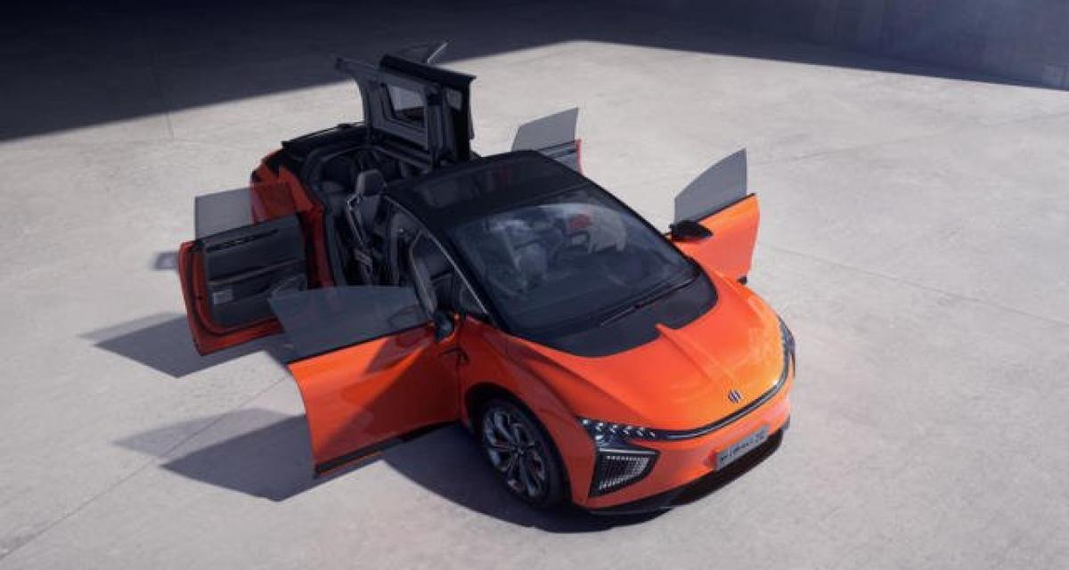 Là où il devient atypique, c’est dans sa partie arrière. Les portières sont antagonistes (dites « suicide »), mais surtout, le toit se relève par moitié. Ce ne sont pas les portière « gulwing » du Tesla Model X, mais c’est clairement pour viser le SUV de Palo Alto. On notera que le véhicule possède deux autres places au rang 3. C’est une 6 places avec fauteuil individuel réglable. L’intérieur devrait être peu ou prou conforme au HiPhi 1, les caméras de rétrovision en moins.