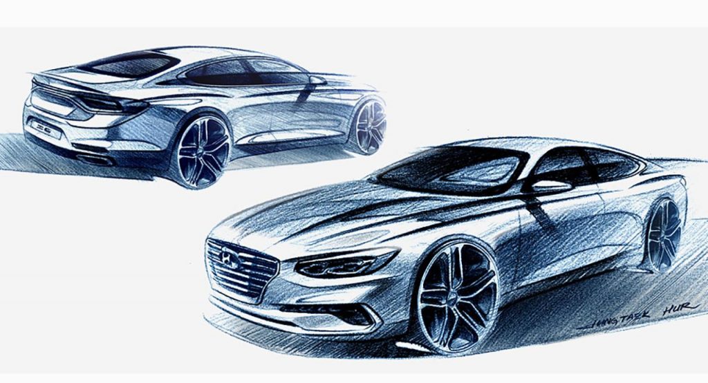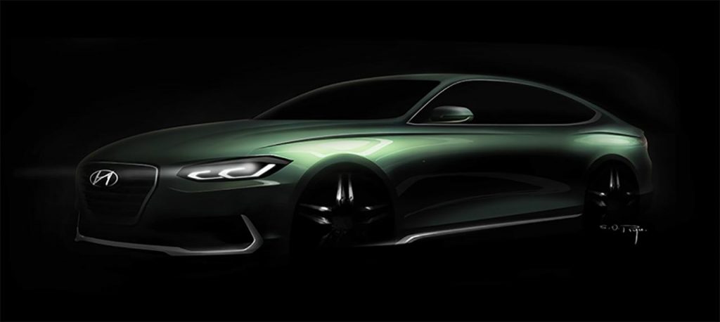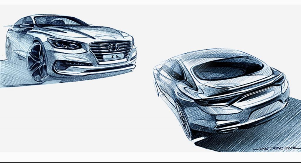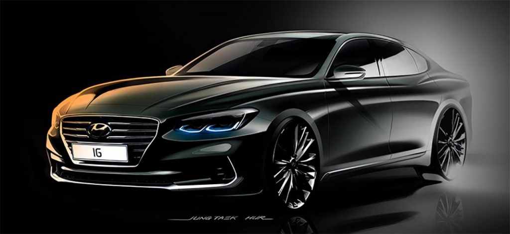 La sixième génération (type IG) de Grandeur sera dévoilée en Corée avant la fin de l’année. Elle s’annonce donc via une série d’esquisses qui montrent une ligne qui s’affine et se muscle. Tout en conservant des liens étroits avec le modèle sortant, comme l’épaulement de l’aile arrière. Le dessin de la calandre, échancrée sur les côtés, montre aussi une évolution par rapport aux autres modèles de la gamme.