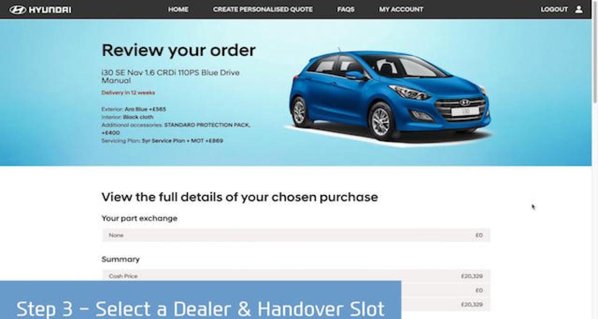 Vous n’aimez pas le contact humain, ne souhaitez pas endurer un commercial un peu lourd, mais voulez quand même acheter une Hyundai. Le constructeur coréen a pensé à vous et il vous sera désormais possible de commander votre nouvelle i30 de votre salon si vous vivez outre-Manche. Le futur cyberacheteur ne sera pas pénalisé côté tarifs puisque les voitures proposées font l’objet d’une remise déjà négociée avec les concessionnaires de la marque.