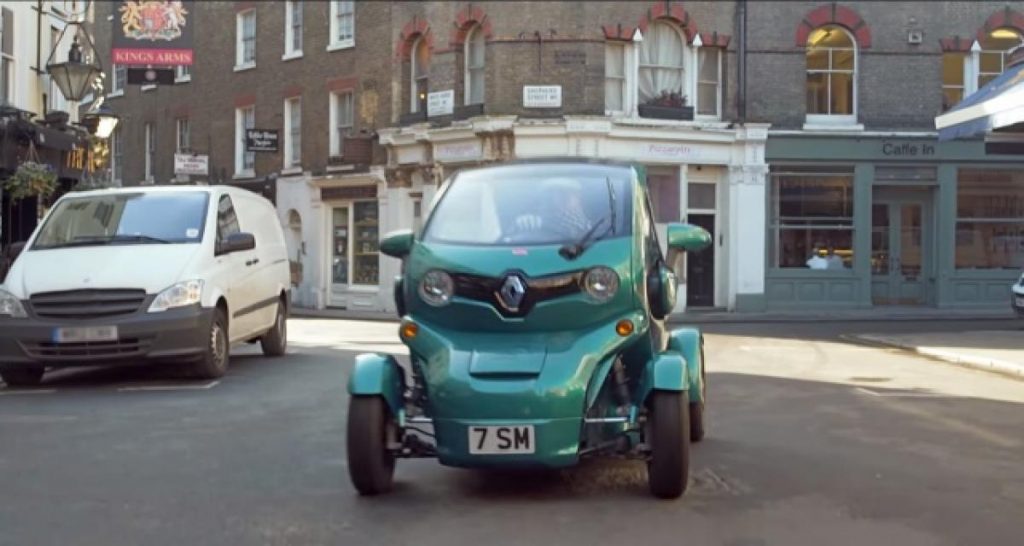 Aussi dit-il apprécier la facilité qu’offre le Twizy pour se faufiler, son silence de fonctionnement du à sa motorisation électrique, mais aussi son coût d’utilisation. Pour la petite histoire, le Twizy de Moss arbore une peinture spécifique qui rappelle celle des Aston Martin DBR1. Sans doute un peu frileux, l’ancien pilote a fait poser une vitre (au moins à gauche).