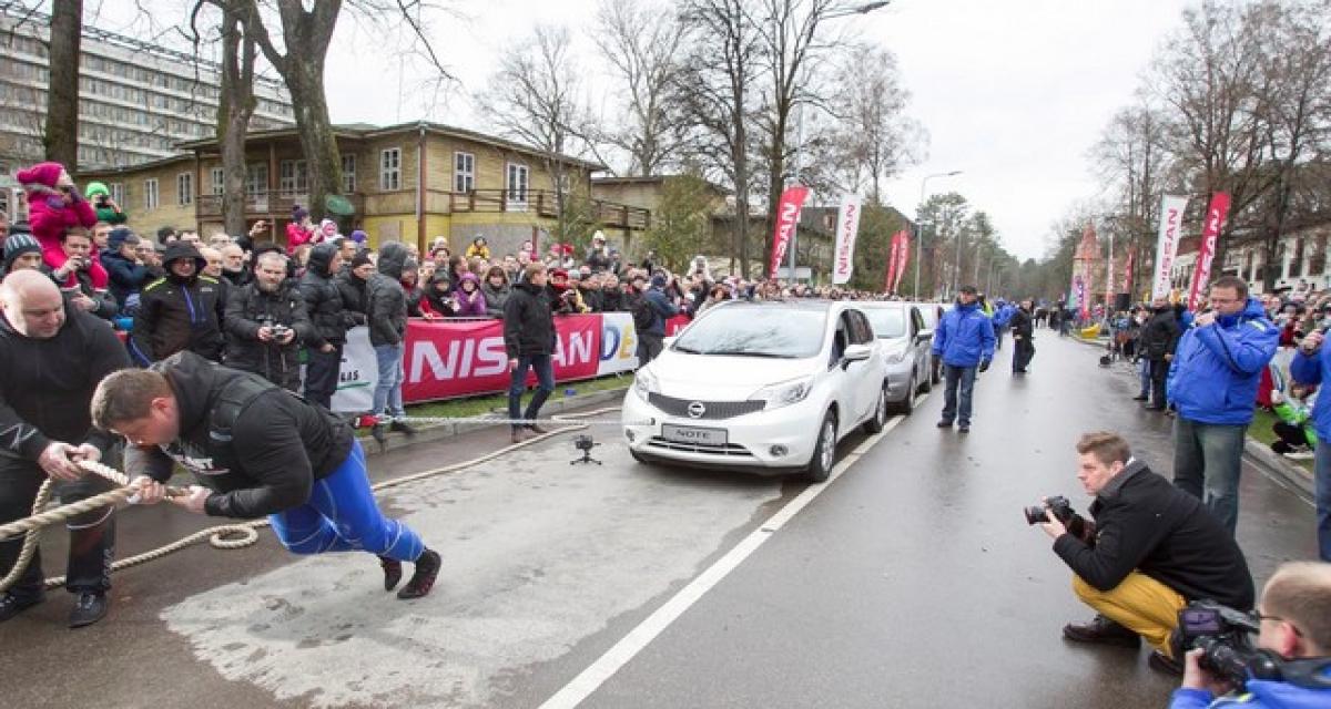 Le colosse lituanien de 1,91 m pour 170 kg était attaché à une corde reliée à douze Nissan Note attachées entre elles, ces dernières revendiquant un poids cumulé de 12941 kilogrammes. L’homme a réussi l’exploit de traîner l’ensemble sur cinq mètres en 32,9 secondes. Le directeur de la communication de Nissan Nordic Europe s’est déclaré ravi d’avoir aidé Zydrunas Savickas à réussir ce record. Chouette.