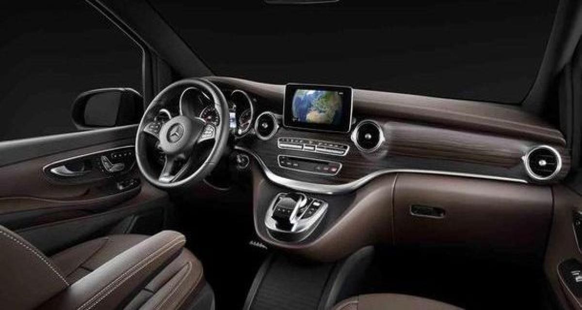 Face à la précédente génération de Mercedes Viano, très axée utilitaire, l’habitacle est beaucoup plus convivial avec une conception plus en adéquation avec la gamme actuelle (dessin du tableau de bord notamment). L’intérieur pourra ainsi s’habiller d’inserts en bois, de garnitures plus cossues avec également des accents d’aluminium. On note également qu’il s’équipera, en fonction des versions proposées, de technologies présentes sur la gamme véhicules particuliers de Mercedes comme le système COMAND ou encore le TouchPad.