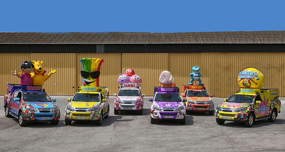Après une visite au Salon, Philippe Lavergne fut convaincu que le D Max Isuzu correspondait le mieux aux besoins spécifiques de l’opération Tour de France. Rapidement, un bon feeling s’établissait avec Philippe Vallier responsable du réseau pick-up France de la marque et un partenariat était établi. Les D Max, avec les bacs enlevés mais pourvus des barres de toit, étaient ensuite confiés à la Société Panenka, où Benoît Maugrion, connaissant son Tour de France par cœur, cordonnait les opérations de création, transformation, adaptation et décoration des véhicules de la caravane Haribo, très appréciée du public.