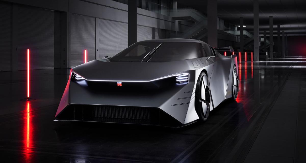 En revanche, de profil et de l'arrière, on a une Nissan GT-R avec sa ligne de toit caractéristique et ses deux doubles feux ronds arrière. Le tout avec des ailes très épaulées et larges, ainsi qu'un immense diffuseur. On notera à l'avant un logo fait de carrés lumineux qui singe le logo GT-R habituellement mis là. Pas de mystère on annonce une GT-R 100% électrique avec ce concept pour ceux qui en doutaient encore.