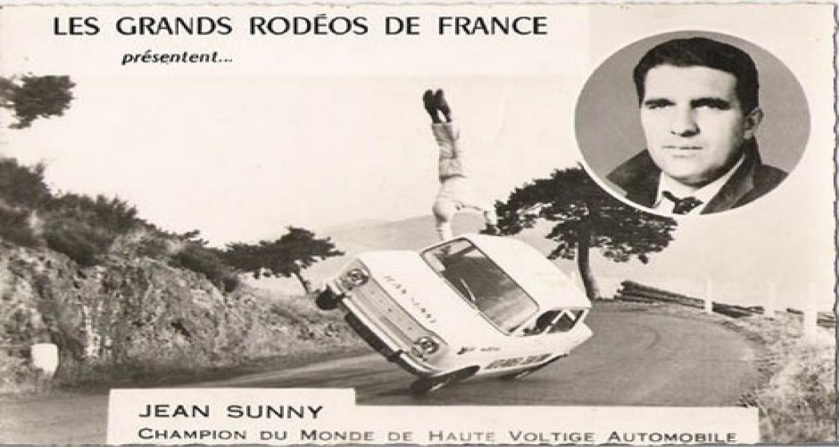 L’Amérique n’a pas le monopole des têtes brulées! Mettre une voiture sur deux roues, traverser un mur de flammes ou partir en tonneau, c’était le quotidien de Jean Sunny. Et le plus incroyable, c’est que Simca le payait pour qu’il fasse cela en public!