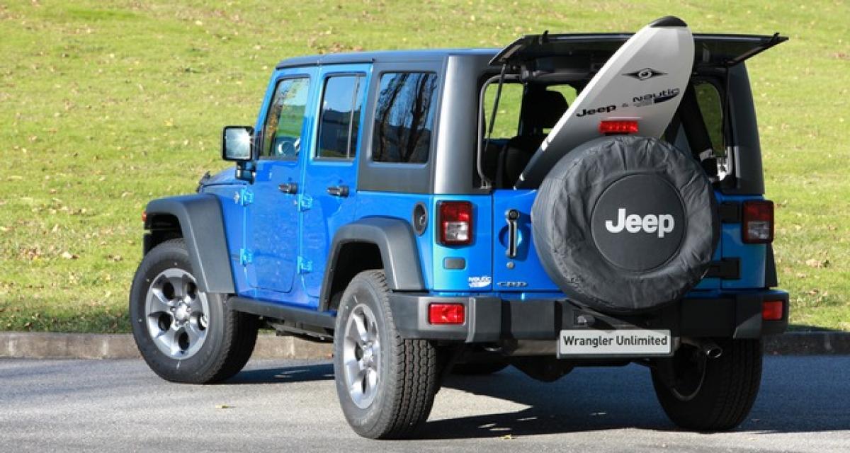 Amateur ? Ce Jeep Wrangler Unlimited Nautic s’affiche à partir de 47 350 euros, planche de surf Bic Mini Malibu comprise.