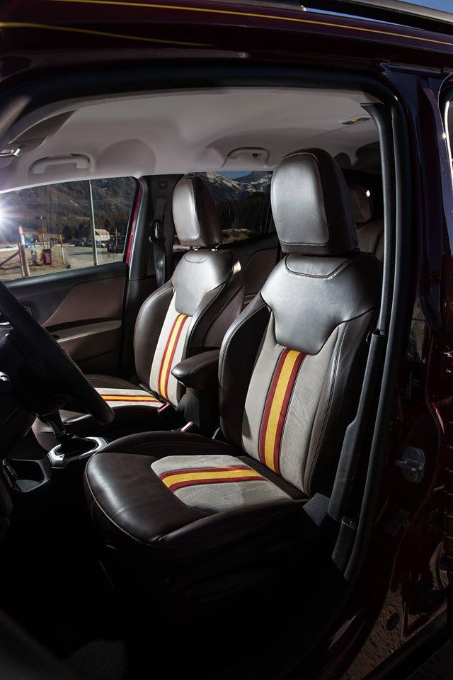 Cette Renegade attire avec ses jantes mais surtout son traitement extérieur de carrosserie qui combine du rouge avec de fines bandes ton jaune. On retrouve cette même harmonie bi-tons au sein de l’habitacle et notamment au niveau des sièges.