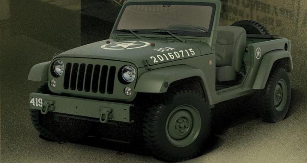 2016, FCA dévoile la Jeep Wrangler 75th Salute Concept, un one off anniversaire qui repose sur la Wrangler Sport et qui joue évidemment la carte d’un certain design rétro inspiré du passé.