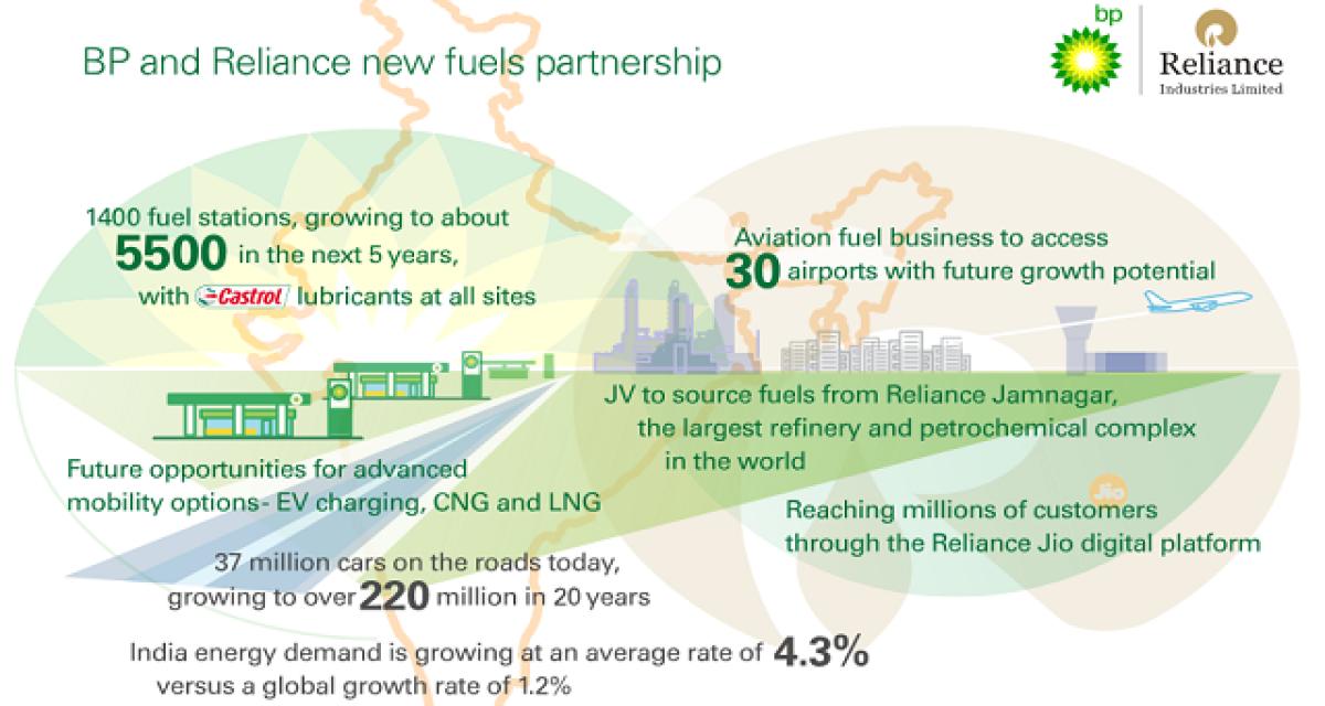 La co-entreprise sera établie à partir du réseau existant de 1.400 stations-service de Reliance. Les deux partenaires ont pour objectif de porter le nombre à 5.500 au cours des cinq prochaines années. Souhaitant ainsi surfer sur le développement rapide du marché automobile dans le pays.