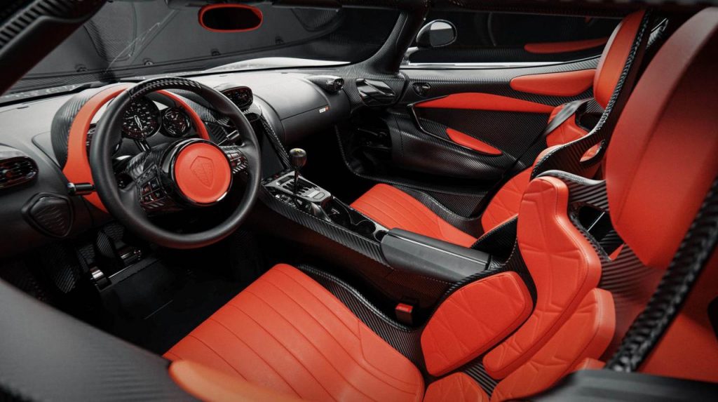 1385 chevaux c'est bien joli, mais sur un tank ce serait idiot. Ici, avec tout les matériaux légers utilisés et le style dépouillé, la CC850 ne pèse que 1385 kg. Un joli rapport de 1:1 pour une voiture moins lourde qu'un Porsche Cayman (pour donner une idée). Il y a sans doute encore un peu de poids à gratter car la Koenigsegg CC850 dispose de la climatisation, de radars à l'avant et l'arrière, de caméras pour se garer sans frotter un plot ou autre, mais aussi d'un écran tactile avec Apple Carplay, avec connexion USB et chargeur par induction.