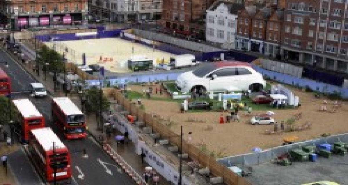 Cette initiative revient donc à la branche marketing de Fiat outre-Manche pour le lancement de la découvrable italienne sur ce marché. Les résidents de Paris ou sa banlieue s’en souviennent : au début du mois de juillet dernier, sur le parvis de la Défense, cette Fiat 500C longue de 17 m et haute de 6 m avait déjà fait tourner la tête des passants. Suite des pérégrinations de cette 500C géante ? En septembre pour un retour en Allemagne du côté de Berlin.
