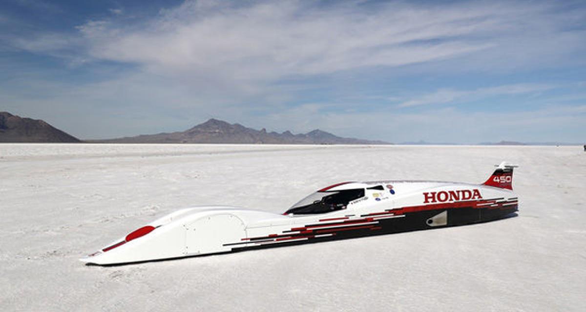 C’est le temps des records. Plus précisément la saison, sur le lac salé de Bonneville, aux Etats-Unis. Honda y est également allé de son record, mais dans un genre particulier. De catégorie il n’y a pas à proprement parler ou alors seulement par voie de conséquence puisqu’il s’est agi de la classe 4 du groupe A, Group 1. Ce qu’on retiendra c’est que cette Honda est le véhicule de la marque le plus rapide jamais construit.
