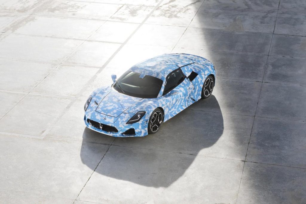 Les modifications extérieures par rapport à la Maserati MC20 Coupé devraient être minimes avec le toit en place. On reste sur du carbone et des matériaux composites pour de la rigidité et de la résistance. Difficile ici de savoir quelle sera la technique employée pour le toit. Rigide que l’on doit déposer à la main ? En toile tendue via une structure ? En deux parties ? Il y a un bosselage sur le prototype. Mais, Maserati a sans doute feinté en mettant un bloc en dessous du camouflage « nuages ».