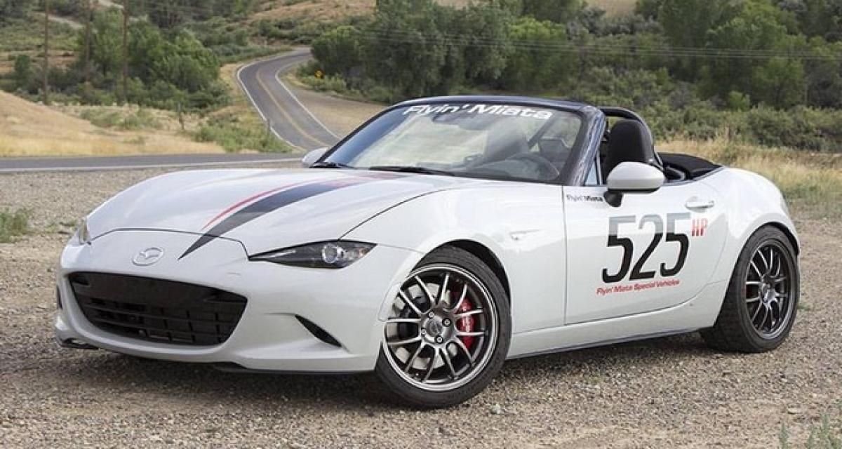 L’une des critiques de la Mazda MX-5 concerne sa puissance. A l’heure où la moindre sportive dépasse les 200ch, les 155ch de la Skyactive 2,0l semble un peu juste pour cetains. Afin d’y remédier, le tuner US Flyin’ Miata propose tout simplement de mettre un V8 Chevy sous le capot !
