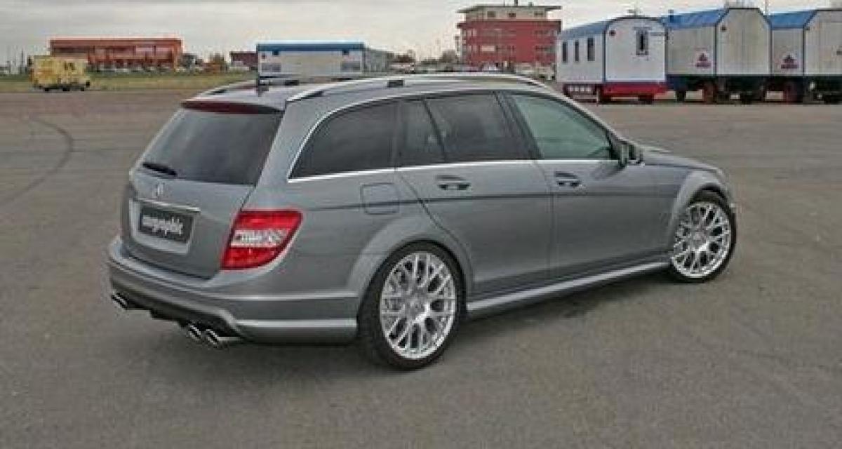 Il s’agit donc d’une version de la Mercedes C63 AMG Estate laquelle revendique ici la puissance de 570 ch pour 700 Nm de couple maximal après reprogrammation de l’ECU, filtres à air et ligne d’échappement sport.