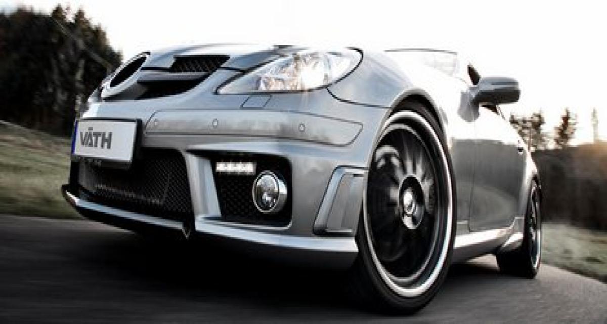 Une Mercedes SLK 55 AMG (V8 5.5 l de 360 ch, couple de 510 Nm, 0 à 100 km/h en 4,9 s et 250 km/h en v-max) c’est bien. Une Mercedes SLK 55 AMG Black Series (V8 5.5 l de 400 ch, couple de 520 Nm, 0 à 100 km/h en 4,5 s et v-max de 278 km/h) c’est mieux. Mais la Mercedes SLK 55 AMG préparée par Väth c’est encore mieux. Place à tous les détails sur cette Pocket Rocket baptisée V58… Rex Accelero peut aller se rhabiller. Attention le roadster va décoller.