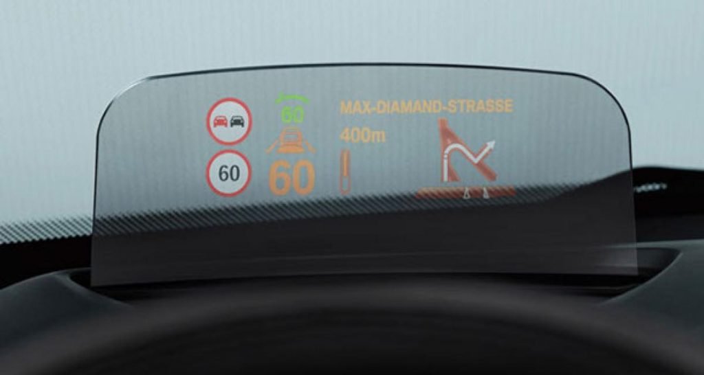 On évite soigneusement toute référence au design du véhicule, mais les illustrations des systèmes de sécurité de la Mini confirment un changement largement pressenti depuis plusieurs mois : l’abandon de l’instrumentation centrale, rétro mais particulièrement illisible. Les compteurs feront désormais face au conducteur, et seront accompagnés d’un affichage tête haute. Un affichage en couleur, sur lame transparente, tel que celui que l’on trouve sur plusieurs modèles chez PSA ou sur la Mazda3, et qui fait son apparition pour la première fois dans le segment des petites.