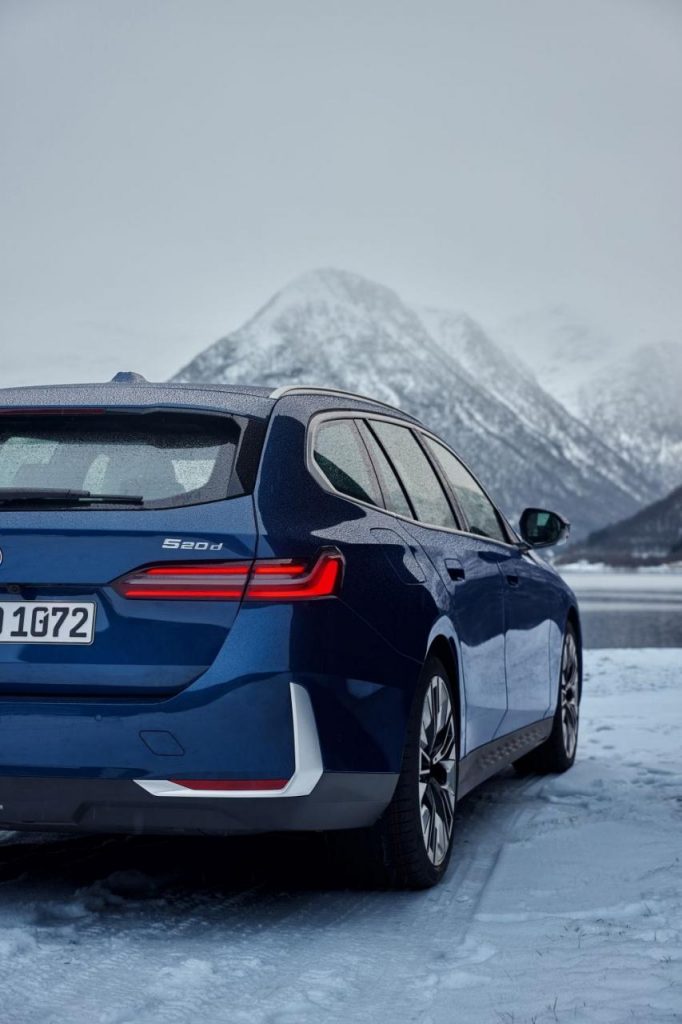 A l'instar de la berline, la nouvelle Série 5 Touring propose un gabarit plus massif par rapport à sa devancière, variante électrique oblige. Elle est plus longue de 97 millimètres (5 060 millimètres), plus large de 32 millimètres (1 900 millimètres) et plus haute de 17 millimètres (1 515 millimètres). Elle dispose de l'empattement le plus long de sa catégorie, augmentant de 20 millimètres pour atteindre 2 995 millimètres. L'ouverture plus large du compartiment à bagages, combinée à un seuil de chargement bas, permet de ranger plus facilement les bagages volumineux. Peu importe la motorisation, toutes les variantes de la nouvelle BMW Série 5 Touring disposent d'un volume de compartiment à bagages qui peut passer de 570 à 1 700 litres.