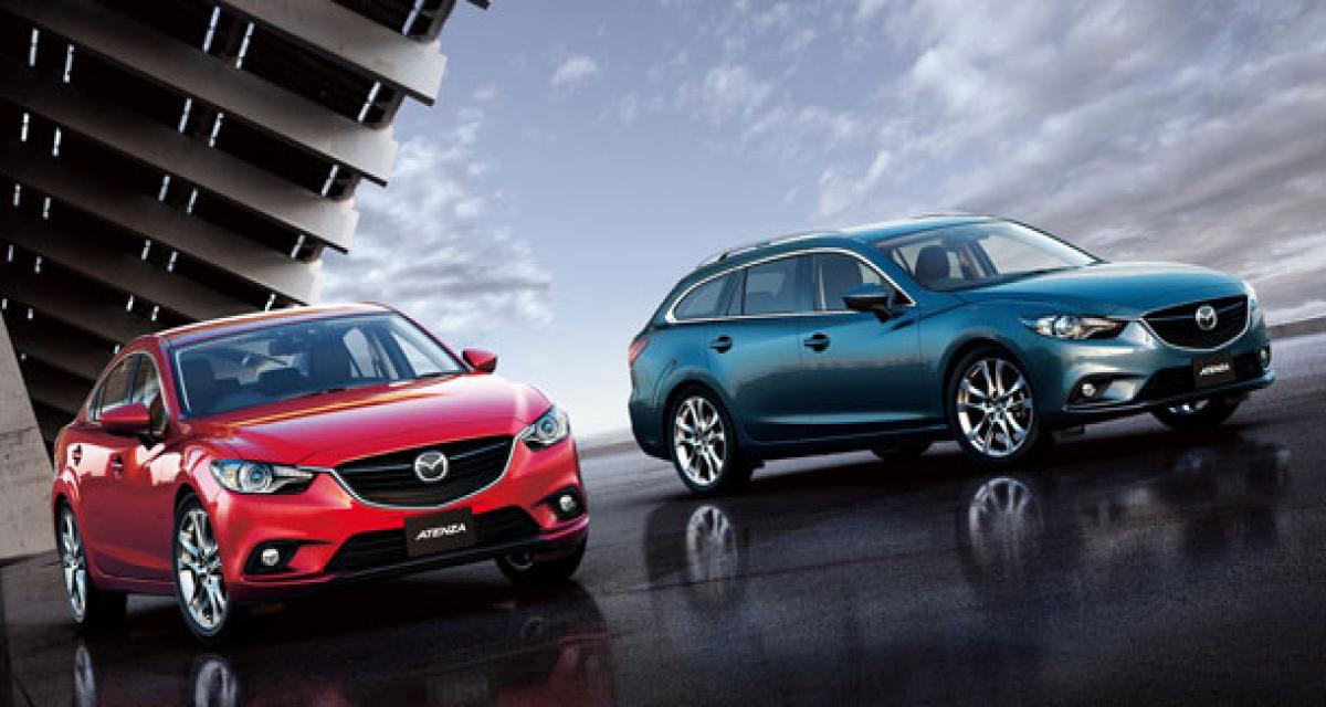 Comme pour les deux précédentes générations, la Mazda6 est vendue au Japon sous le nom de Mazda Atenza. La nouvelle génération y débute donc sa carrière, en proposant le choix entre berline et break, mais surtout entre essence et diesel. Une offre très rare au Japon.Conçu avant tout pour le marché Européen, le moteur diesel SkyActiv 2,2l se révèle également capable d’une homologation très favorable au Japon, à la fois pour ses émissions mais aussi pour sa consommation. Les Atenza qui en sont dotées sont ainsi (tout comme celles dotées du 2,0l essence atmosphérique) exemptées de la taxe d’acquisition et de la taxe sur le poids des véhicules. Avec 22,4 km/l (4,46 l/100 km – JC08) en boîte manuelle et 20 km/l (5 l/100 km) en version automatique, l’Atenza s’approche des résultats d’une Camry Hybrid à 23,4 km/l (4,27 l/100 km). Mazda n’hésite pas à comparer les 400 Nm de couple à celui proposé par un V8 essence.