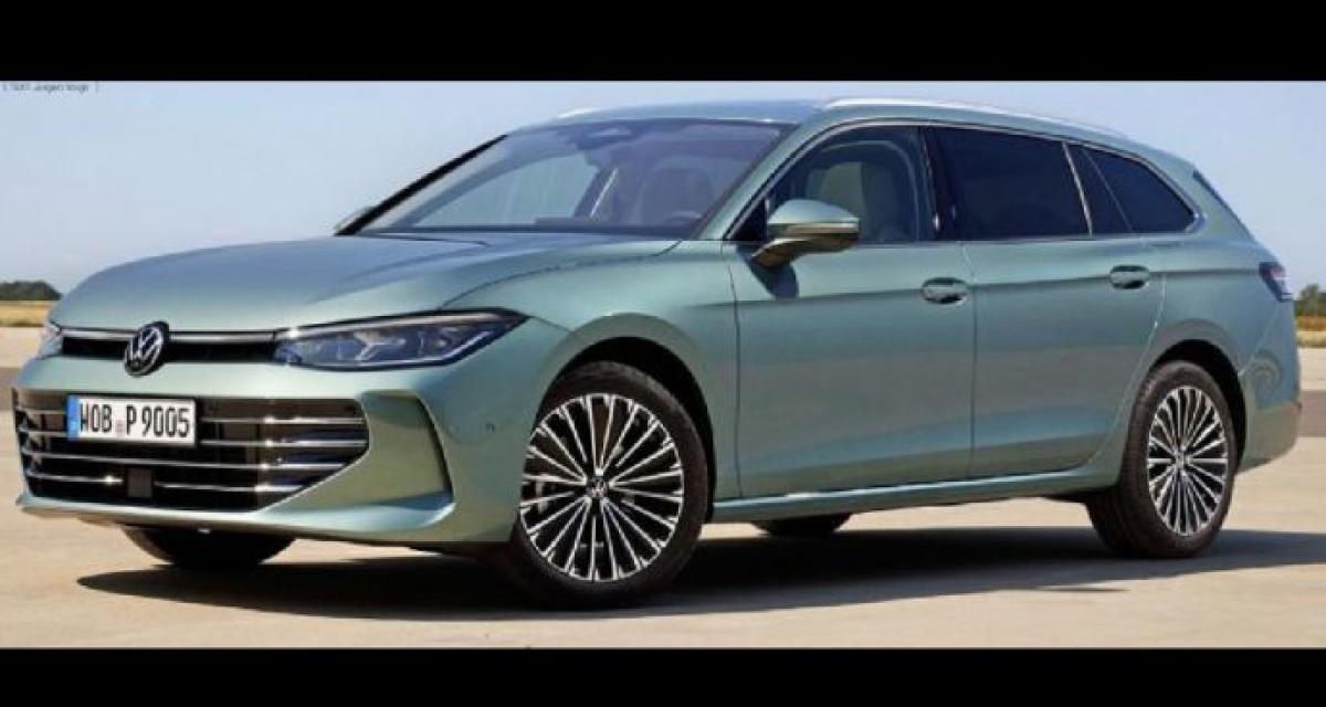Uniquement disponible en version break, cette Passat MY2024 semble conserver le profil de son prédécesseur, au moins pour les 2/3 arrière. Pour l'avant, en revanche, la grille des débuts, réapparue avec la génération B4, n'est plus entre les deux feux (ce qui créait un bandeau noir) mais en partie basse du bouclier. Et cette grille prend de l'ampleur. Les feux, eux, lorgnent du côté des VW électriques actuelles. Le bandeau est symbolique et rappelle celui de la Golf par exemple. Il y a de l'Arteon Shooting Brake dans cette face avant, non ?