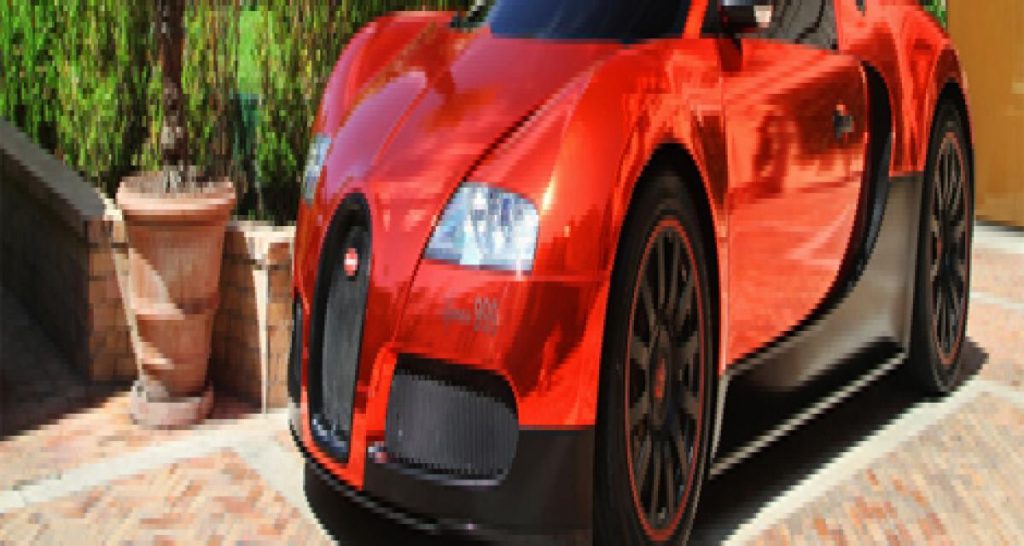 Mais il y a de ceux qui, frustrés de ne pas avoir mit la main sur un des ces exemplaires limités ou qui simplement n’aiment pas les retouches esthétiques apportées, se permettent de configurer leur(s) Veyron(s) à leur sauce, comme ce propriétaire émirati. Sa voiture est recouverte d’un film autocollant rouge chromé et d’un autre, simulant la peau de crocodile. Un gout pour le moins douteux ^puisque même les jantes en sont recouvertes.