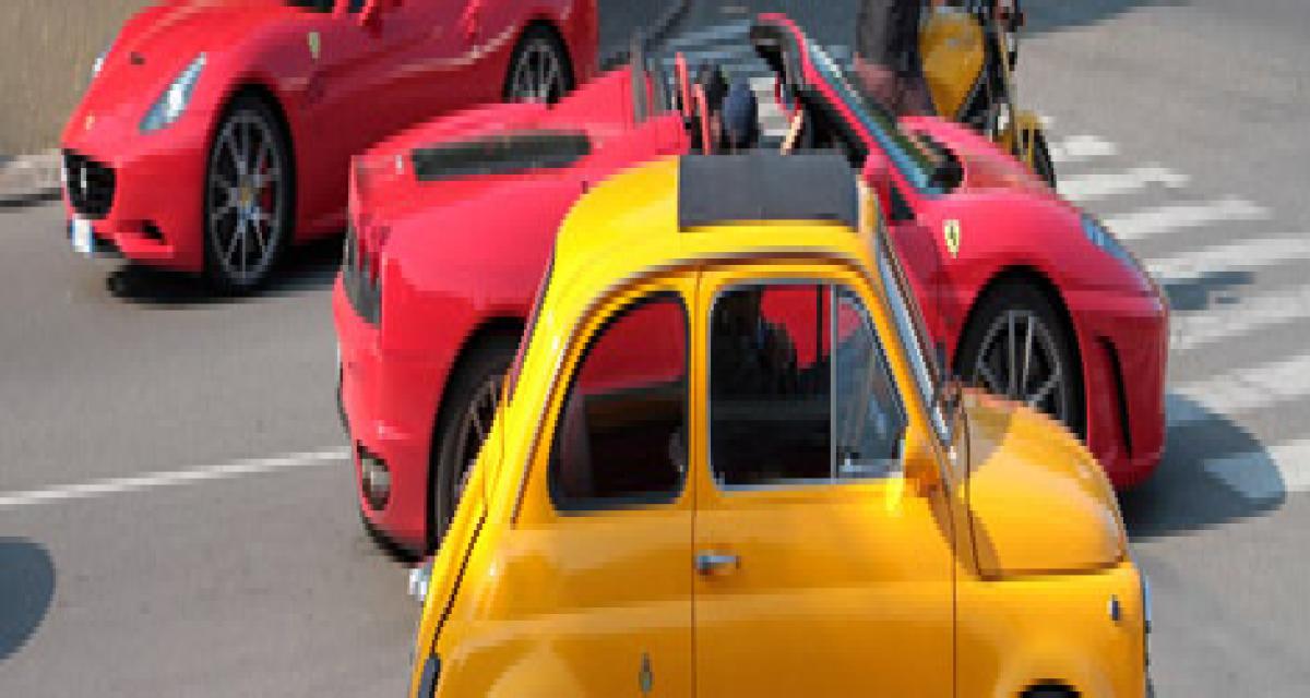 La balade (plus ou moins) tranquille en California avec son V8 4,3l de 460ch en position avant, la virée musclée en F430 Spider (qui se voulait 16M) et son V8 4,3l de 490ch en position arrière ou la flânerie citadine en Fiat 500 deuxième du nom avec son bi-cylindre 500cm3 de près de 20ch.