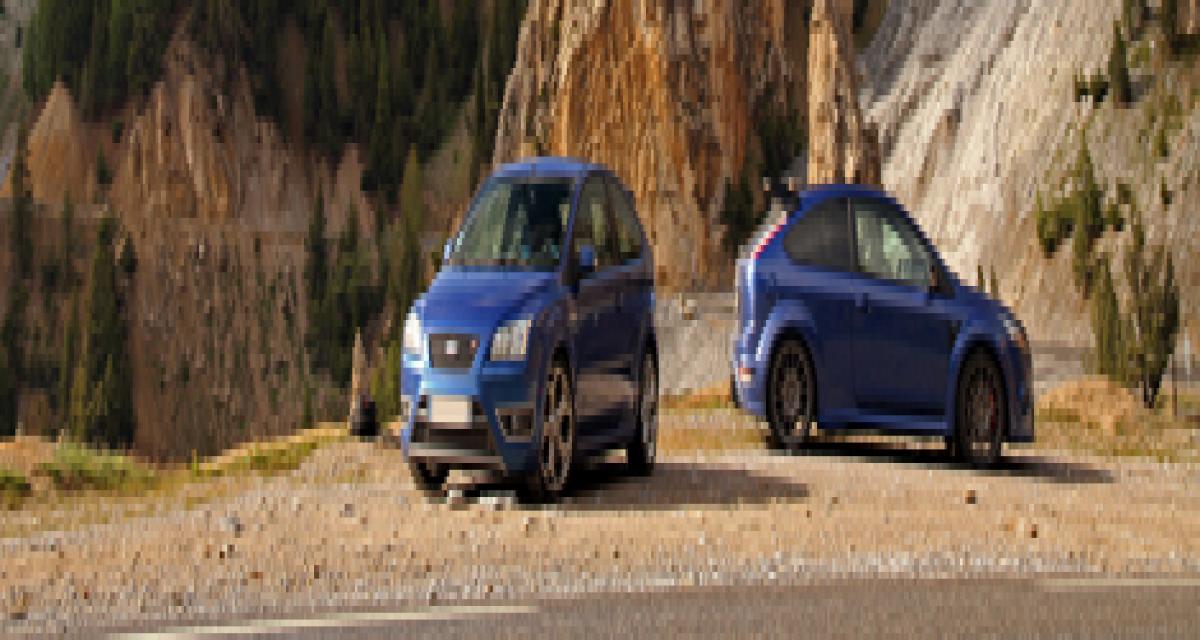 Les deux protagonistes ne sont autres qu’une Focus ST et une Focus RS. La première, sortie en 2005, est une version sportive de la Focus qui allie un maximum de compromis. Elle s’équipe du 5 cylindres 2,5l turbo d’origine Volvo et développe alors 225ch et 32.6mkg. Ses performances sont généreuses, supérieures à celles d’une Focus RS I et elle se permet même de titiller quelques concurrentes équipées de V6 comme l’Alfa Romeo 147 GTA, par exemple. Forcement, avec un tel niveau de compromis, la voiture reste un peu trop aseptisée. Mais son succès commercial a emmené Ford à concevoir la Focus RS II. Le résultat donne une WRC homologuée sur route (mais qui malheureusement a oubliée sa transmission intégrale). Outre les réglages châssis spécifique, elle reprend le 2,5l turbo de la ST pour produire ici quelques 305ch et 44,8mkg. Malgré son système à pivots découplés à l’avant, la Focus RS ne devance pas la Megane RS pourtant moins puissante. La cause: le chiffre de 305ch de Ford apparait trop optimiste alors que les 250ch de Renault sont plutôt pessimistes.