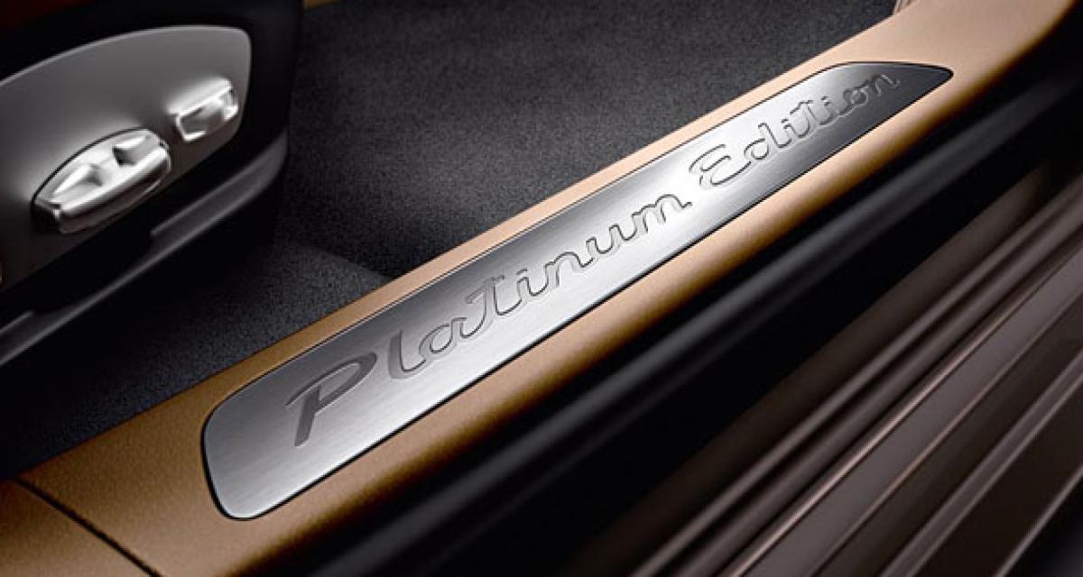 La Panamera propose donc une série limitée Platinum Edition, qui doit son nom à la finition « platine » de divers éléments de finition : bas de coquilles de rétroviseurs, barres des entrées d’air avant, écope latérale reprise de la Turbo, partie inférieure du bouclier arrière, jonc décoratif sur le hayon… Les jantes 19 pouces sont également reprises de la Turbo, et la carrosserie peut adopter un blanc opaque, noir opaque, noir métal, gris foncé métal ou le brun acajou ici présenté.