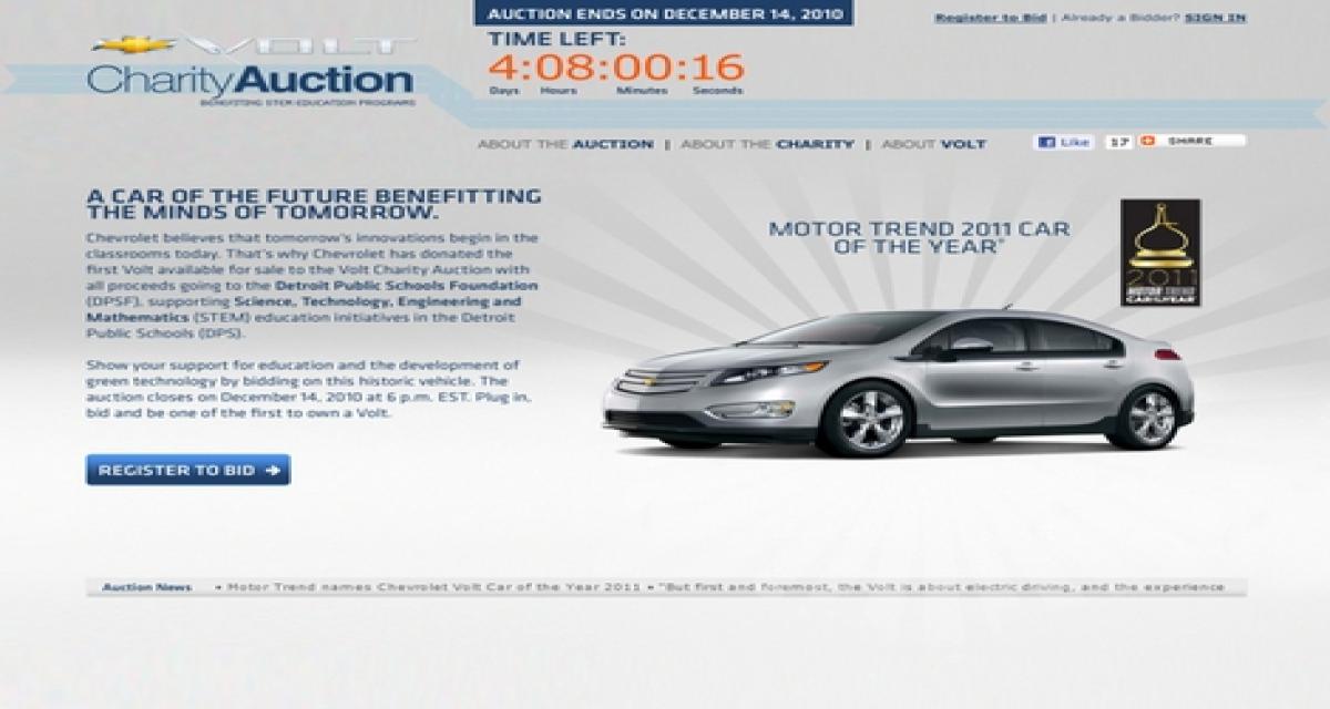 Déjà auréolée d’une pluie de récompenses en marge de son lancement, la Chevrolet Volt continue de faire parler d’elle. Ici place à du business charitable puisque la première Volt est actuellement mise aux enchères sur la toile.